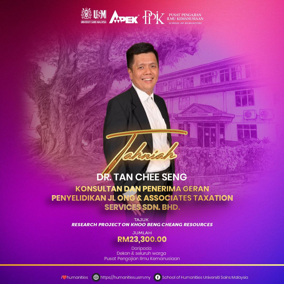 TAHNIAH DR. TAN CHEE SENG - PENERIMA GERAN PENYELIDIKAN CCKF-NUS SOUTHEAST ASIA CENTRE FOR CHINESE STUDIES SMALL GRANT SCHEME 2026